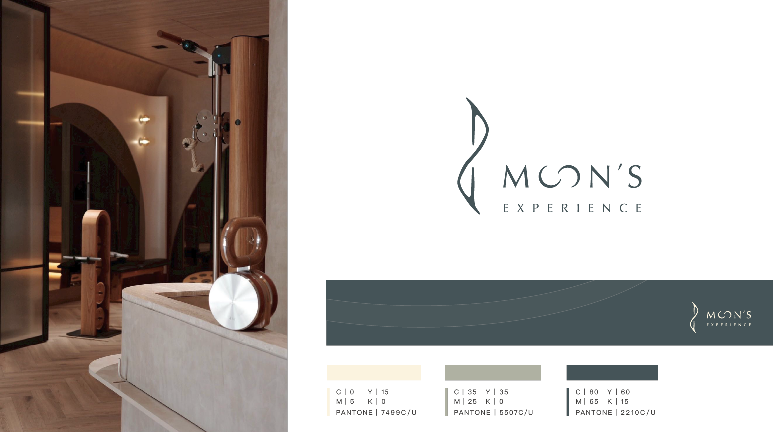 標誌設計以月亮的多重意象為靈感,結合身體曲線與週期循環的意象,設計上運用柔和流暢的線條,呼應身體曲線與能量流動。圓形、螺旋、波浪等循環符號則強調自然規律與人生週期,體現品牌持續守護與陪伴顧客成長的理念。讓品牌在各種應用中都能展現獨特的療癒能量與現代美感。